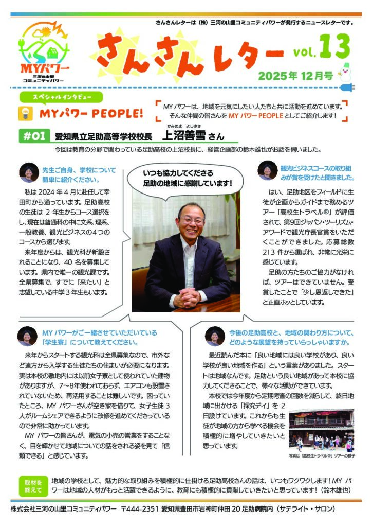 報告・告知 2019年11月22日 最終更新日時 : 2019年11月22日 MYPower1 さんさんレター 2025年12月号 三河の山里コミュニティパワーが発行するニ 年末年始休業のお知らせ(12/27(土)... 三河の山里コミュニティパワーは、2025 電気・ガス料金支援(電気・ガス料金負担軽... いつもご利用いただきまして、誠にありがと 夏季休業のお知らせ(8/14(木)-17... 三河の山里コミュニティパワーは、2025 6周年寄合が新聞記事になりました 2025年6月19日に足助交流館視聴覚室 電気・ガス料金支援(電気・ガス料金負担軽... いつもご利用いただきまして、誠にありがと 「互いの森」リーフレット MYパワーが豊田市大多賀町(豊田市足助地 地域課題解決金のお渡しについて いつもご利用いただきまして、誠にありがと 2025年度燃料費調整単価について いつもご利用いただきまして、誠にありがと 制限または中止の料金割引の廃止について いつもご利用いただきまして、誠にありがと 1 2 3 … 7 Next »